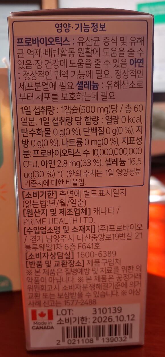 이 제품의 특이한 부분은 바다 건너 물 건너 캐나다에서 온 것이라는 점.